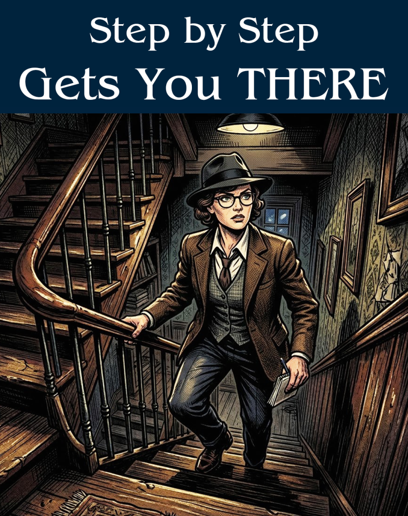 Take the process step-by-step to stay focused. Your decisions will make your mystery unique. There’s no set order to begin since plotting isn’t linear; use diagrams to track the story.